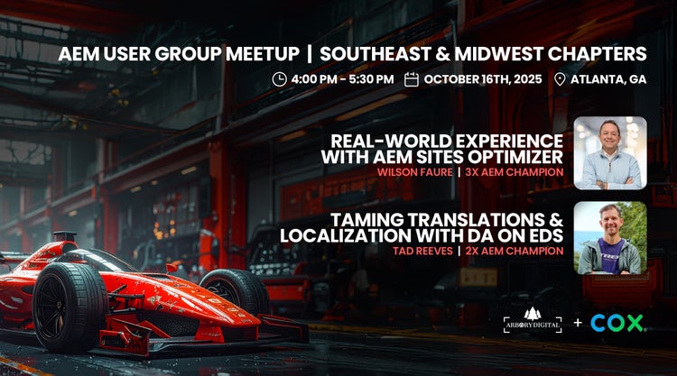 In-person AEM Meetups are back! Following the success of our in-person AEM meetup in Columbus, the Southeast AEM User Group and Midwest AEM User Group teamed up to host an AEM User group meeting in Atlanta at Cox Communications headquarters. Hosting the meetup were 2X AEM Champion Tad Reeves and 3X AEM Champion Wilson Faure, bringing together AEM technologists and enthusiasts for a discussion on some of the latest Adobe technology.