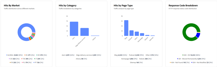This is one of the most important views because it measures and monitors the interactions and patterns of AI traffic. It provides an overview of how many times your site has been requested by all non-human traffic along with the success rate and time to first byte (TTFB). It also provides a readability score that reflects how well an LLM can parse your content. This can reveal issues like heavy JavaScript that slows down or prevents crawling.